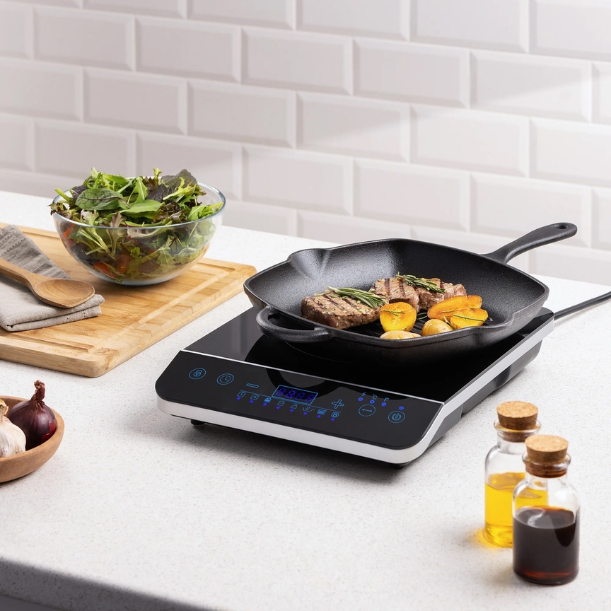 У меня небольшое кафе, поэтому плита мне просто необходима. Но на большую модель места нет, обратила внимание на индукционную с двумя варочными панелями. Очень нравится, что есть стандартные программы – не нужно тратить время на выбор режима для обычных задач. Плюс пользуюсь блокировкой кнопок – при большом объеме заказов помогает защитить руки от ожогов. Удобно, работает хорошо, меня устраивает.