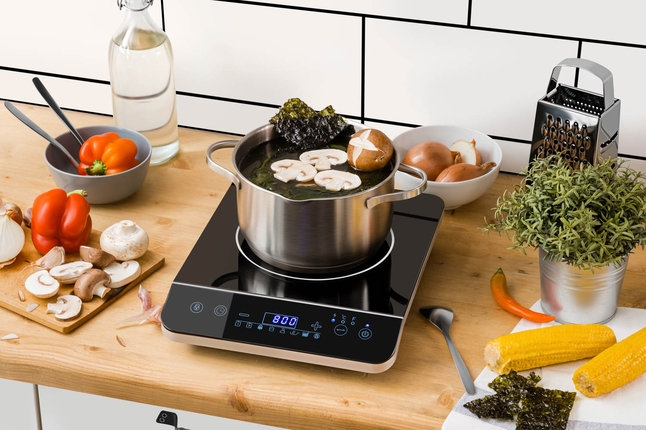 Снимаю квартиру, поэтому плиту покупать нет смысла. Взял варочную панель – она легкая, маленькая. Ставлю как удобно – много места ей не надо. Пользуюсь в основном несколькими режимами типа жарки, тушения. Готовится все быстро – не нужно часами стоять. Пробовал по таймеру готовить, ну тоже вполне ничего.